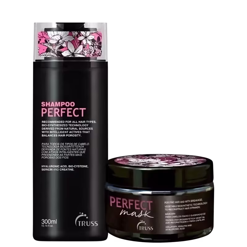 Kit com shampoo e máscara para todos os tipos de cabelo. Truss Perfect restaura a elasticidade e resistência dos fios.