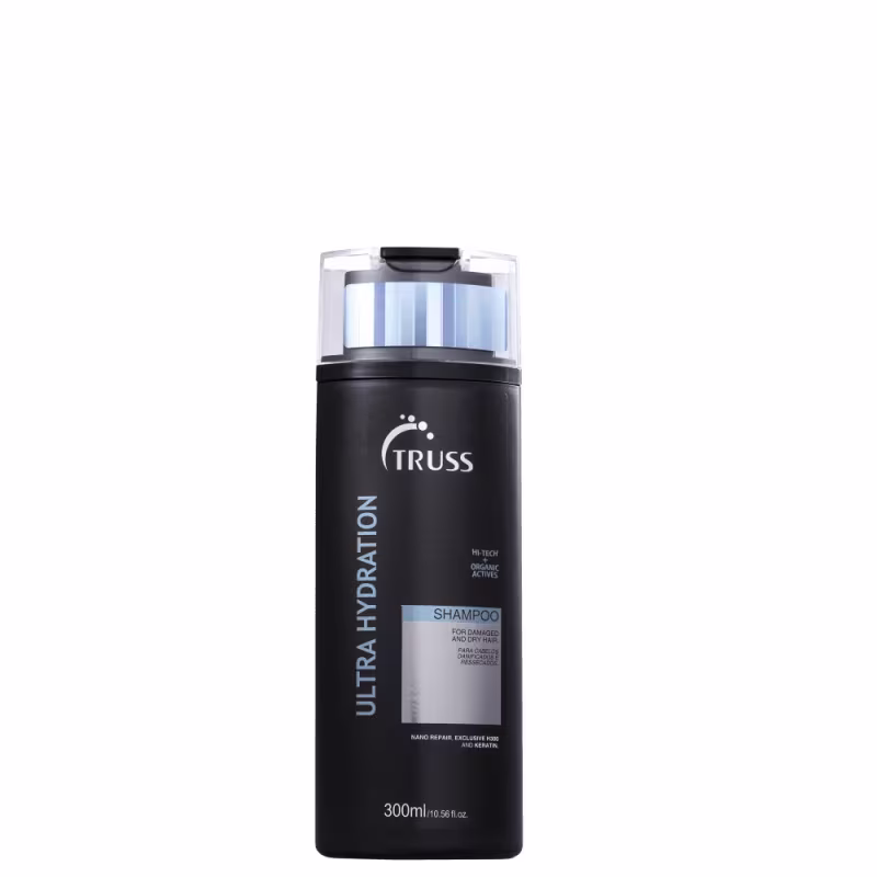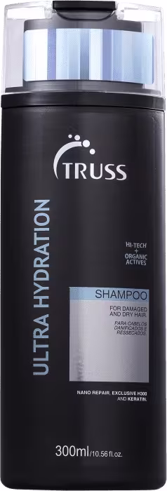 Truss Ultra Hydration - Shampoo 300ml: limpa, restaura a hidratação e aumenta a resistência, brilho e maciez dos fios.