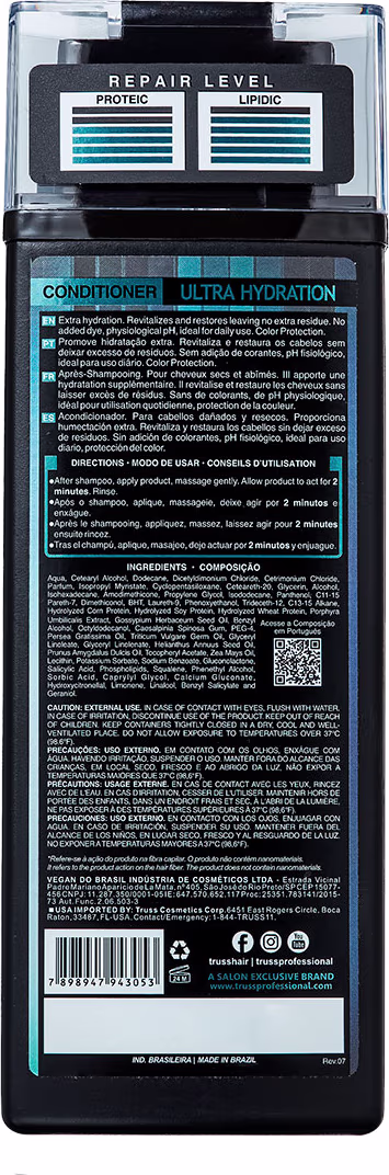 O Condicionador Truss Ultra Hydration Plus possui uma nano tecnologia que penetra profundamente nos fios e repõe hidratação perdida com as agressões químicas e mecânicas. Ele também reduz o volume e o frizz e facilita o pentear. Você conquista um cabelo renovado, resistente e saudável.