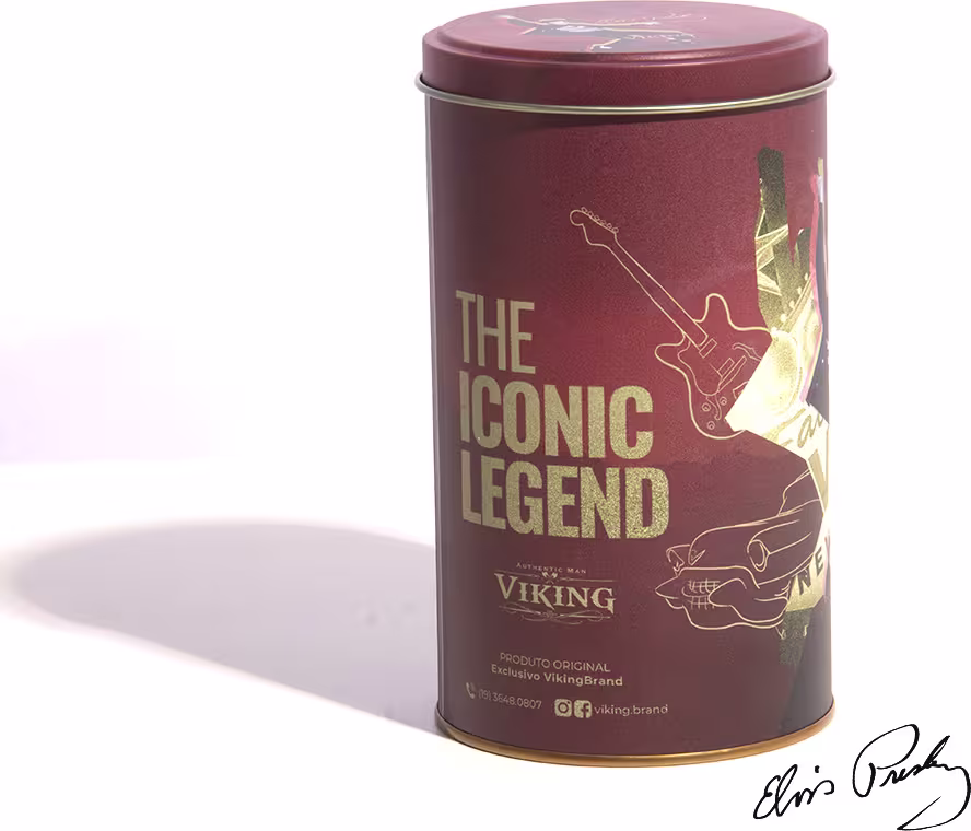 O Kit Viking Elvis Presley traz em cada item o máximo de detalhes da história do rei do Rock. A essência aparece nas cores, fragrâncias e embalagem.