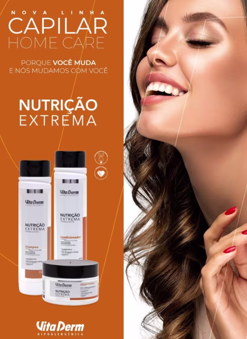 Vita Derm desenvolveu uma linha completa de shampoos, condicionadores, hidratantes e finalizadores, que proporcionam beleza e tratamento aos fios e couro cabeludo..