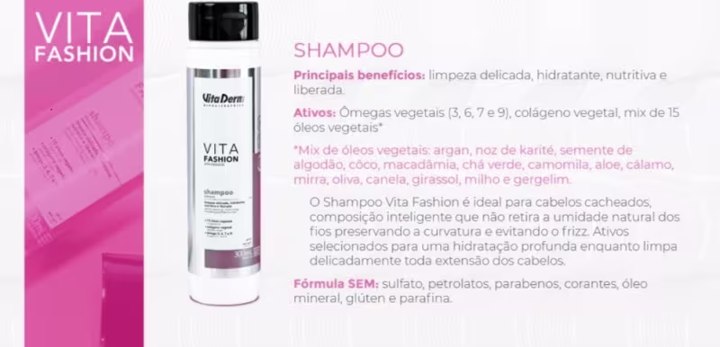 Vita Derm Vita Fashion - Shampoo 300ml: promove uma hidratação profunda e limpeza delicada.