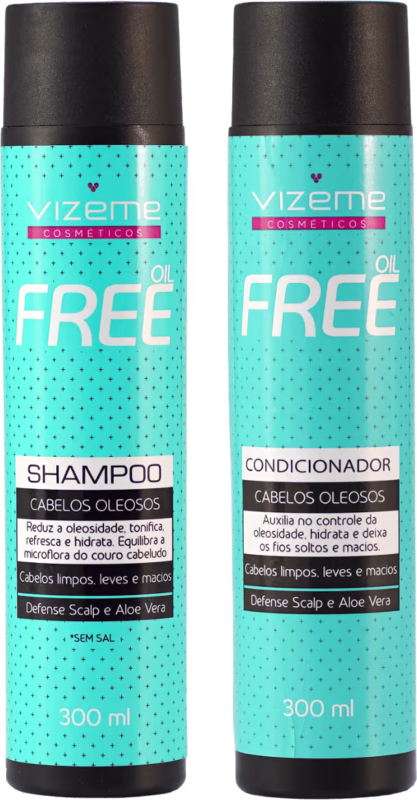 Kit com shampoo e condicionador para cabelos oleosos. Vizeme Oil Free Duo reduz a oleosidade, tonifica, refresca e hidrata.