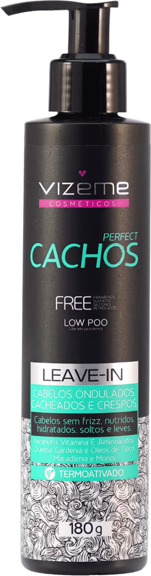 Vizeme Perfect Cachos - Leave-in 180g: é perfeito para finalizar os cachos, assim como ser utilizado para disfarçar a diferença entre a parte com e sem química.