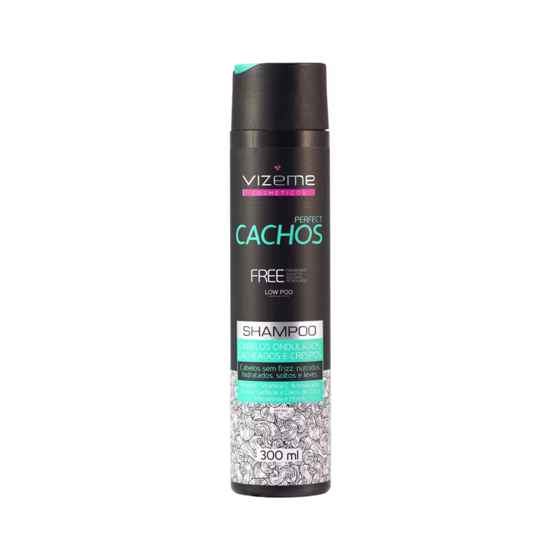 Vizeme Perfect Cachos - Shampoo Sulfato Free 300ml: limpa suavemente os fios ao mesmo tempo que hidrata e cria condições perfeitas para o crescimento (couro cabeludo limpo e raiz hidratada).