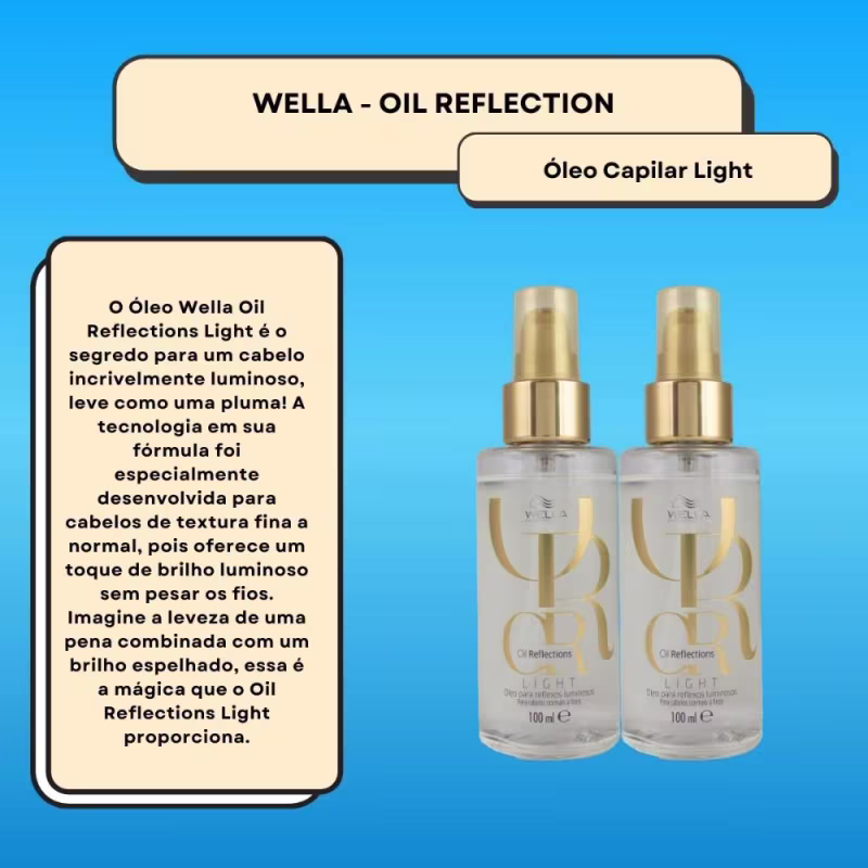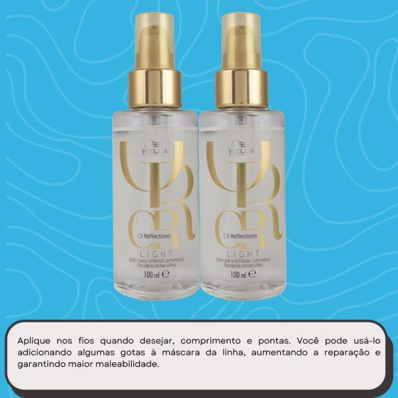 Não sei o CEPKit dois dois óleos capilares. Kit Wella Oil Reflections Light Double nutre e ilumina intensamente os fios finos sem adicionar peso.