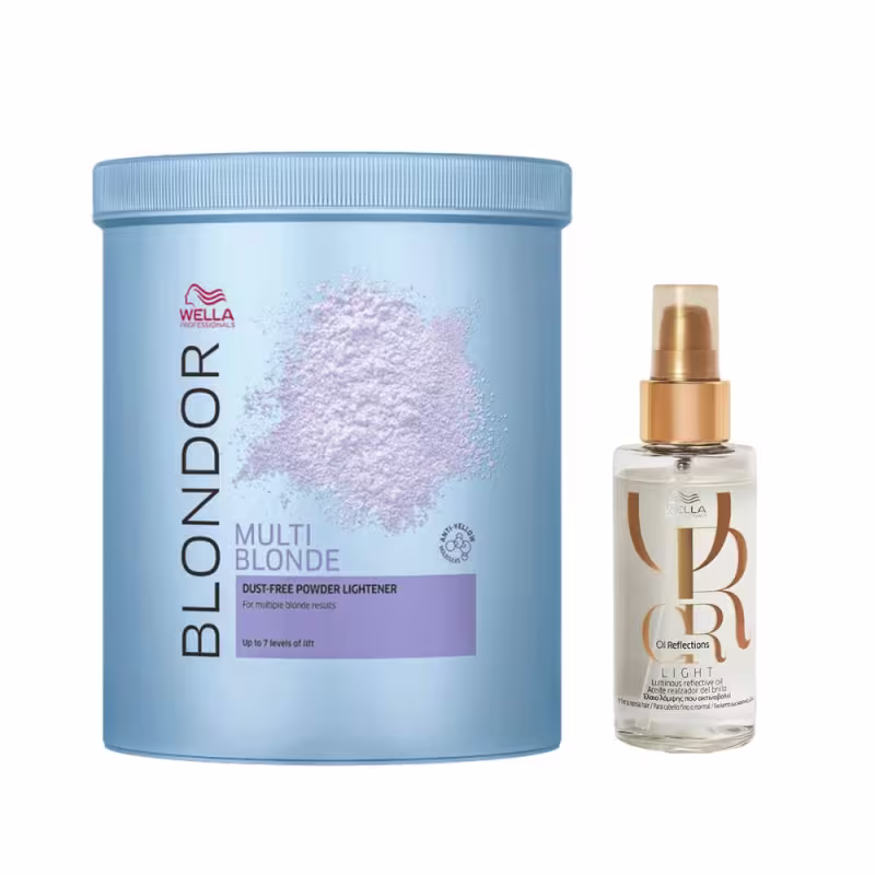 Não sei o CEPKit com pó descolorante e óleo capilar. Wella Professionals Blondor Oil Reflections proporciona clareamento uniforme, além de proteção e brilho para os fios.