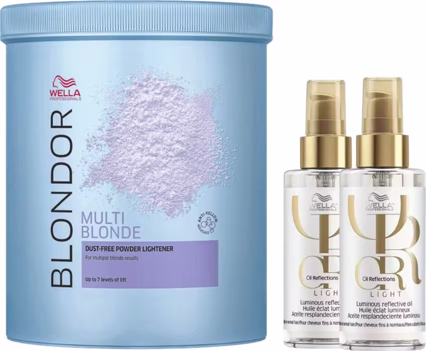 Kit Wella Professionals Blondor Oil Reflections Light Luminous com pó descolorante e óleo capilar. Melhores Kits da Wella na BLZ. Ver mais ❯