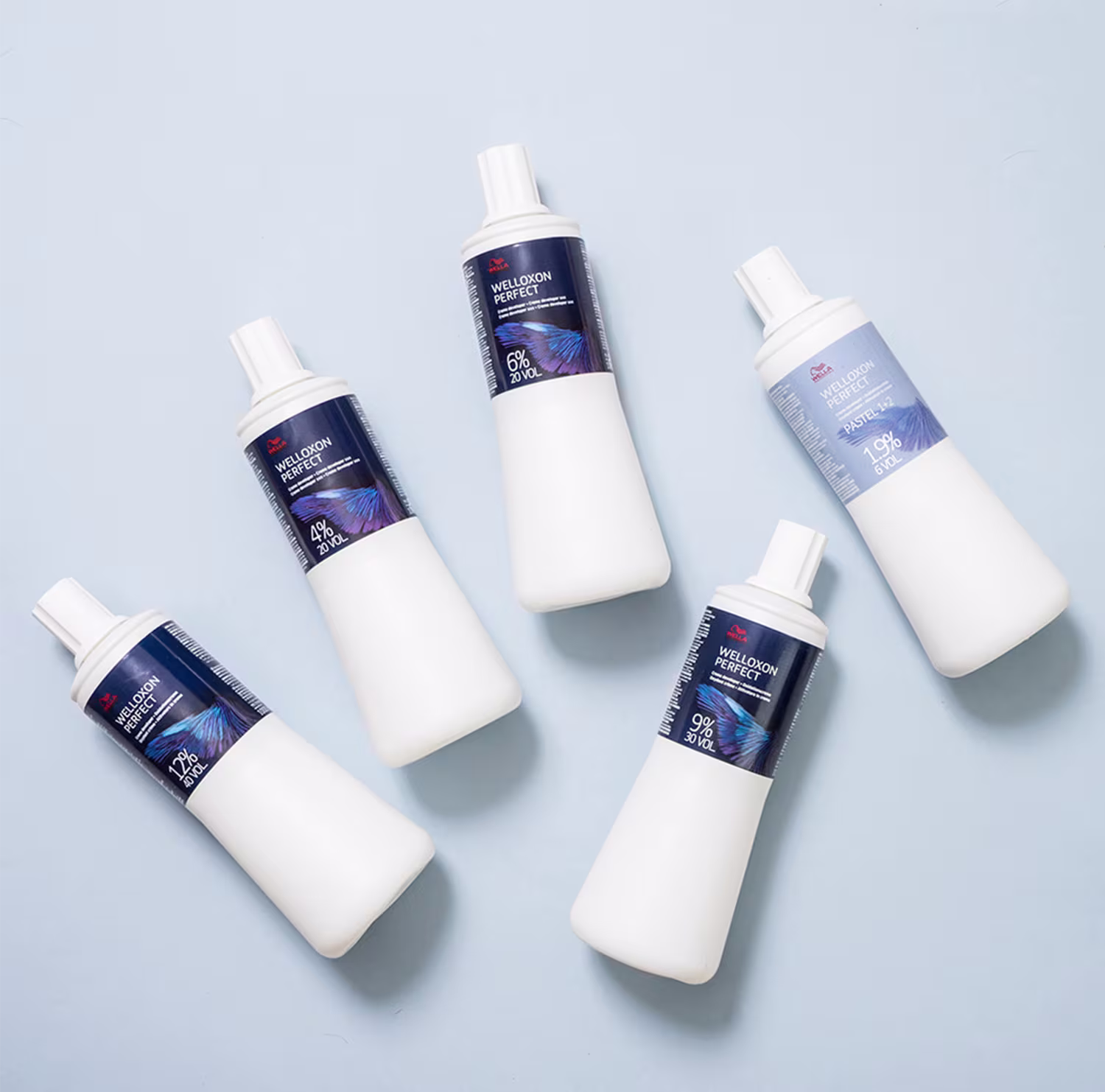 Wella Professionals Welloxon Perfect 6% - Oxidante 20 Volumes 1000ml: clareia até 2 tons e é ideal para fazer cobertura de fios brancos.