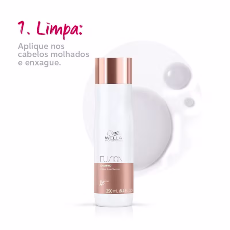 Wella Professionals Fusion - Shampoo 250ml: limpa e auxilia na reparação dos danos.