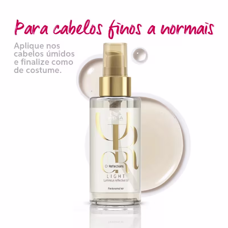 Wella Professionals Oil Reflections Light - Óleo Capilar 30ml: nutre instantemente os fios, sem pesar. Com efeito luminoso, também pode ser usado antes da química para proteger dos danos.