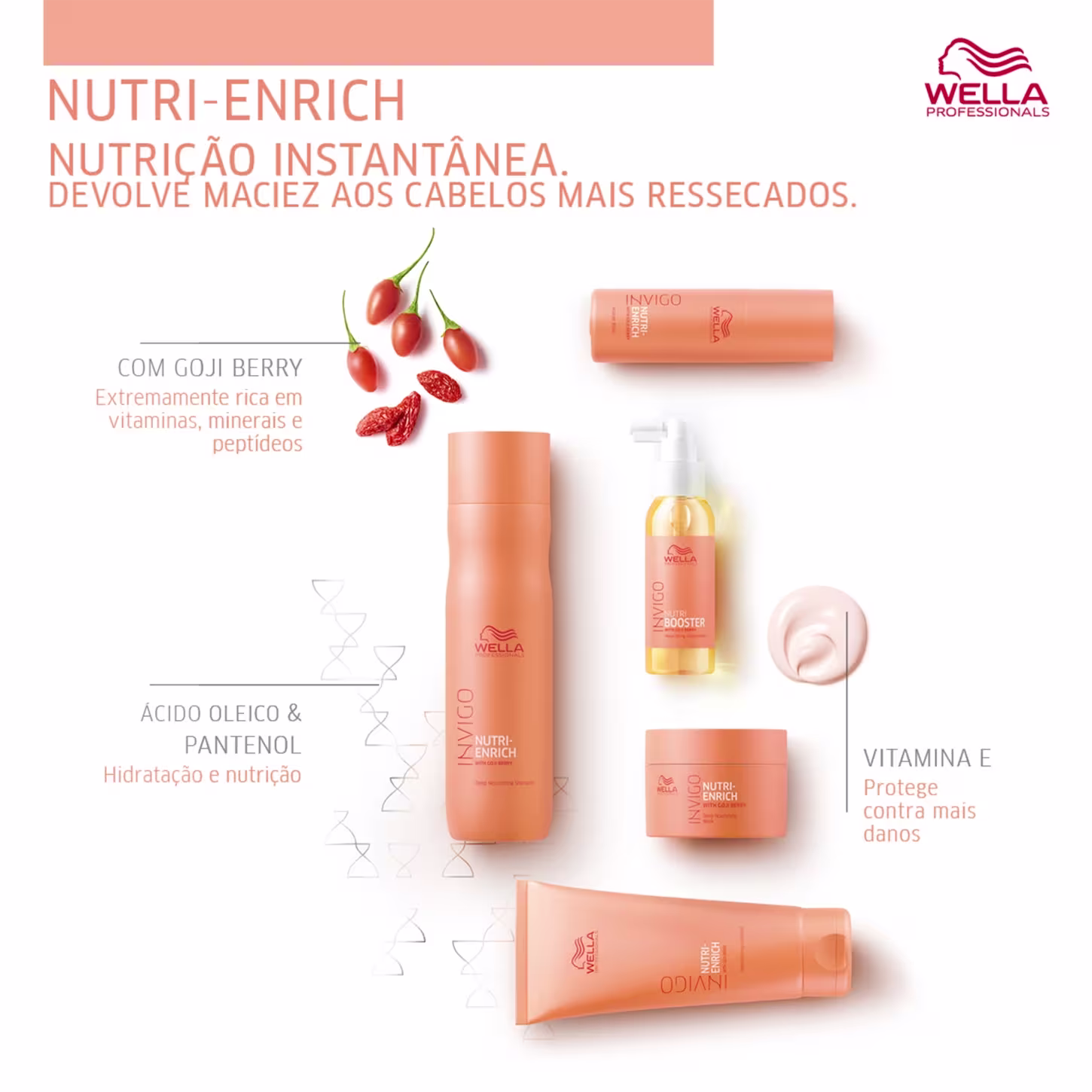 Com mais de 130 anos no mercado, e com origem alemã, Wella Professionals acompanha as tendências década após década e investe em estudos tecnológicos para estar sempre entre as maiores. A marca cuida do cabelo colorido, loiro, oleoso, sem vida, ressecado, envelhecido e com química ou alisamento. Com ativos poderosos, revitaliza a saúde capilar e recupera a beleza, o brilho, a maciez e o movimento dos fios. Há cem anos, a marca inova a cada dia para atender sempre e com mais atenção as suas clientes.