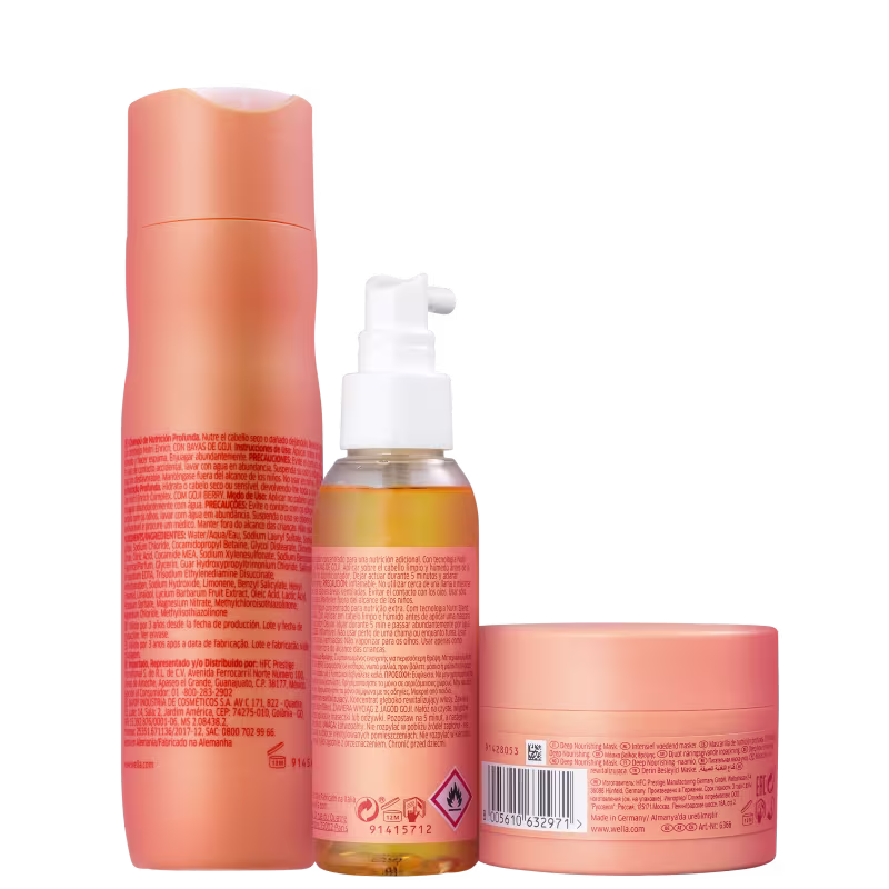 Kit Wella Professionals Invigo Nutri-Enrich Booster Duo traz ingredientes que tratam a fibra capilar tanto em sua superfície, suavizando-a, como na parte mais profunda. Isso tudo aliado a uma fragrância luxuosa frutal chipre almiscarada.