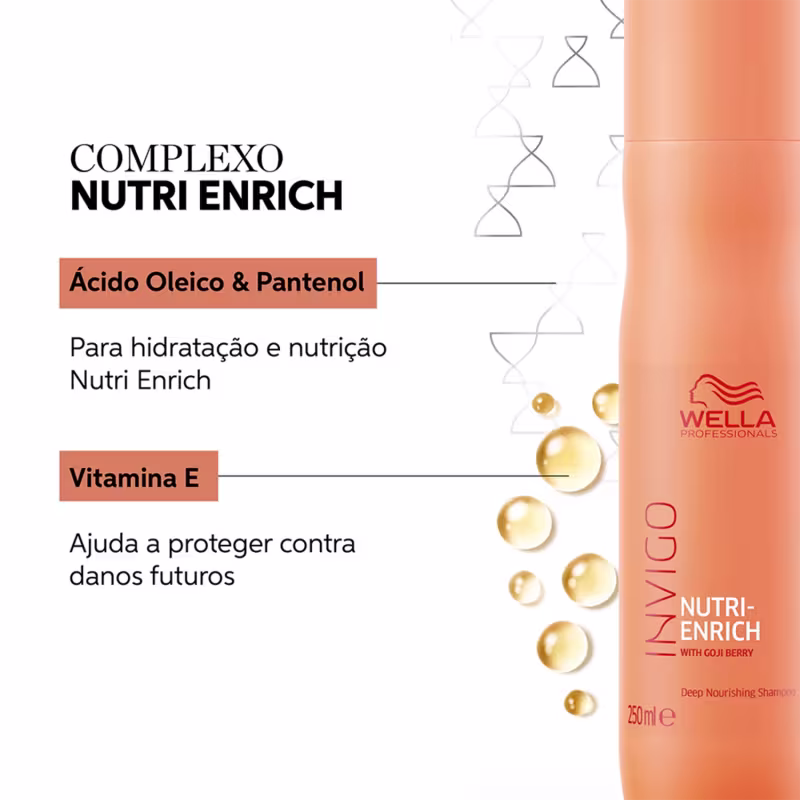 Wella Professionals Invigo Nutri-Enrich - Shampoo 250ml: tem o poder de hidratar e nutrir os fios desde o momento da lavagem.