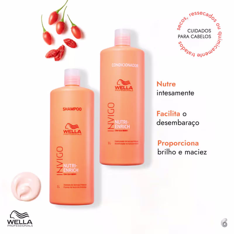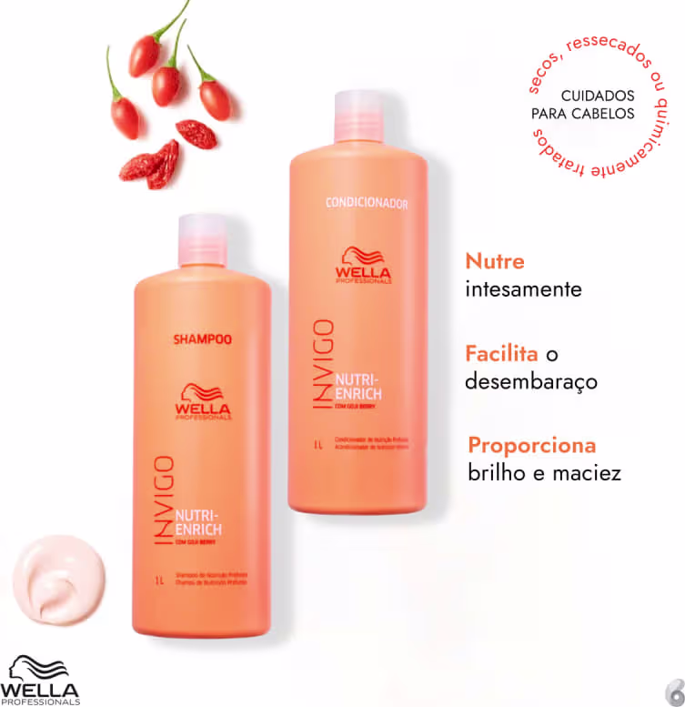 Kit para cabelos secos, ressecados ou com química. Wella Professionals Invigo Nutri-Enrich Power Salon ajuda a hidratar e nutrir intensamente os fios.