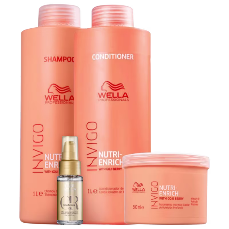 Kit Wella Professionals Invigo Nutri-Enrich Shine Salon: para nutrir os fios secos e danificados. Melhores Kits de Wella Professionals na BLZ. Ver mais ❯