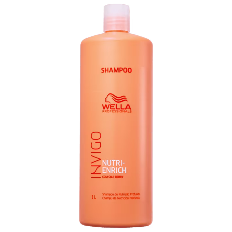 Wella Professionals Invigo Nutri-Enrich - Shampoo 1L: sua fórmula é rica em ingredientes que conseguem proporcionar maciez absoluta e muito brilho, uma vez que suaviza a superfície do cabelo. Afinal, trabalha tanto na reposição de nutrientes essenciais como na hidratação.