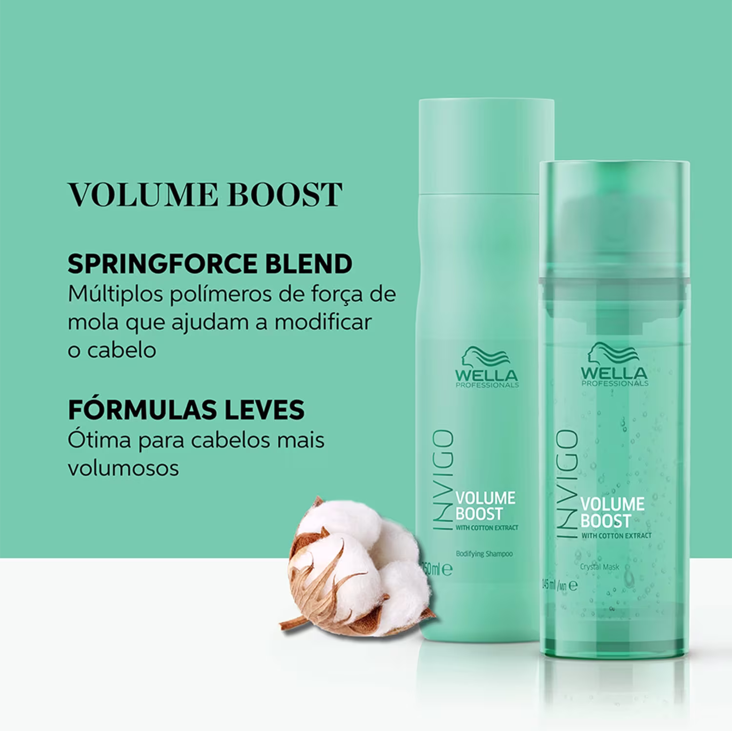 Kit de tratamento para cabelos finos. Wella Professionals Invigo Volume Boost Duo trata, encorpa e dá mais volume aos fios minguados e sem vida. Ideal para garantir o movimento desejado.