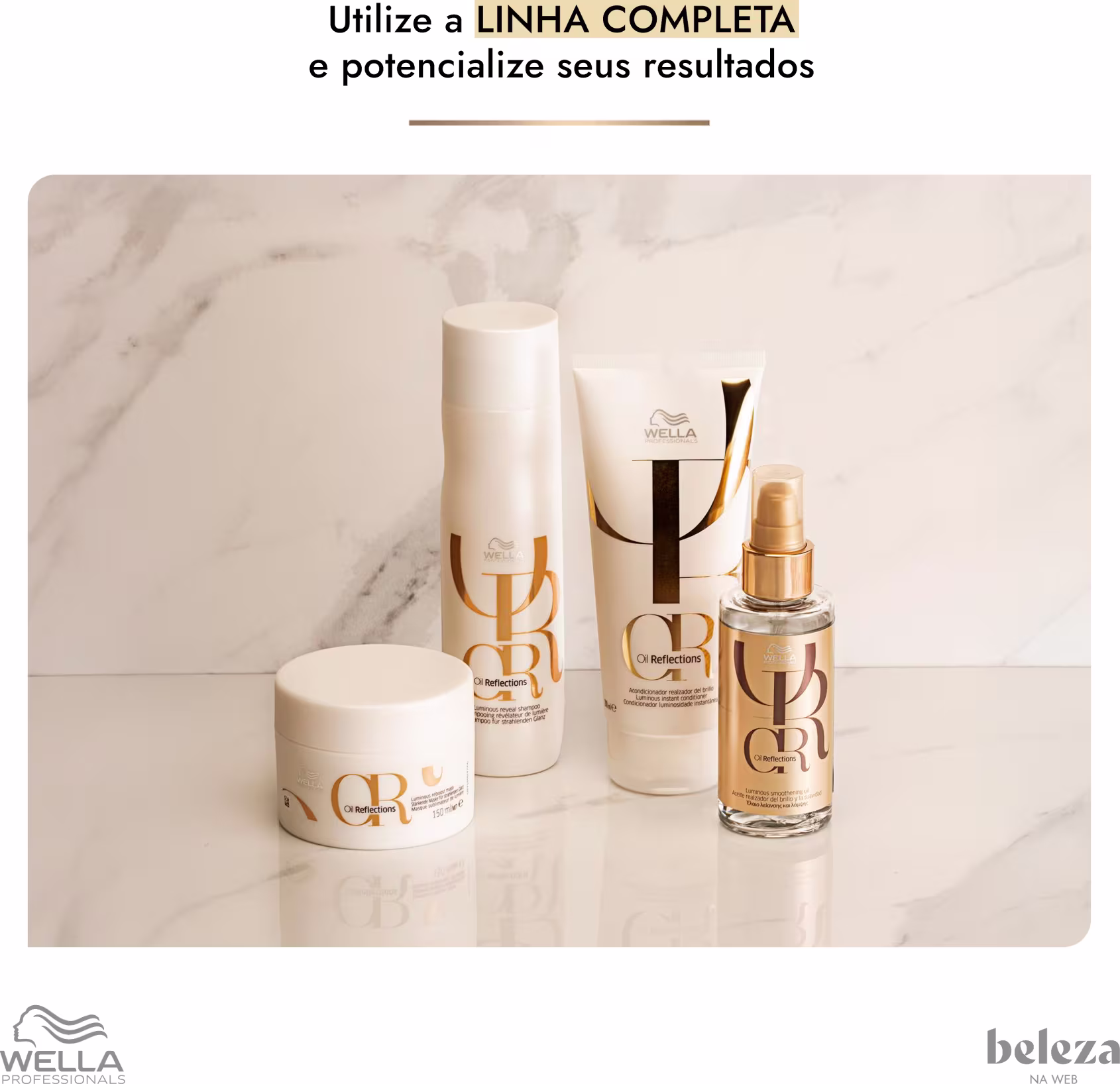 Com mais de 130 anos no mercado, e com origem alemã, Wella Professionals acompanha as tendências década após década e investe em estudos tecnológicos para estar sempre entre as maiores. A marca cuida do cabelo colorido, loiro, oleoso, sem vida, ressecado, envelhecido e com química ou alisamento. Com ativos poderosos, revitaliza a saúde capilar e recupera a beleza, o brilho, a maciez e o movimento dos fios. Há cem anos, a marca inova a cada dia para atender sempre e com mais atenção as suas clientes.