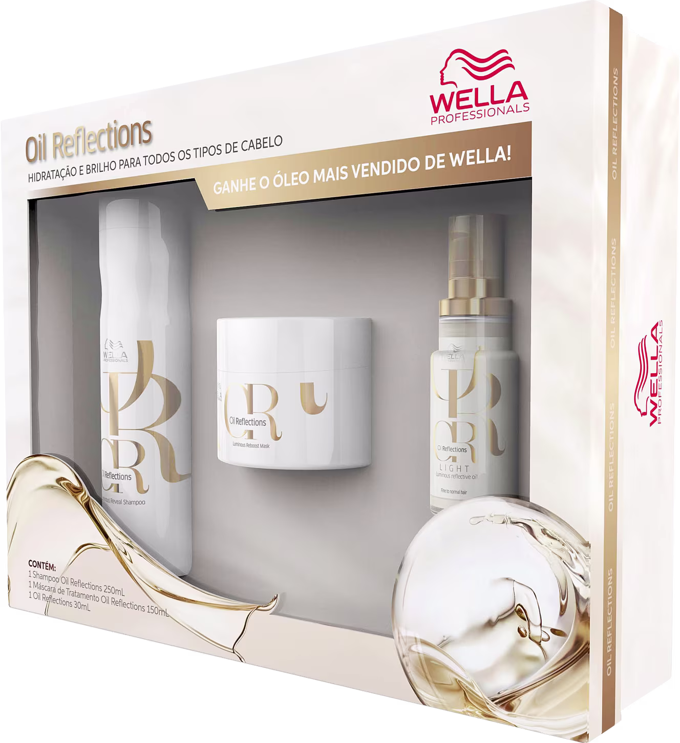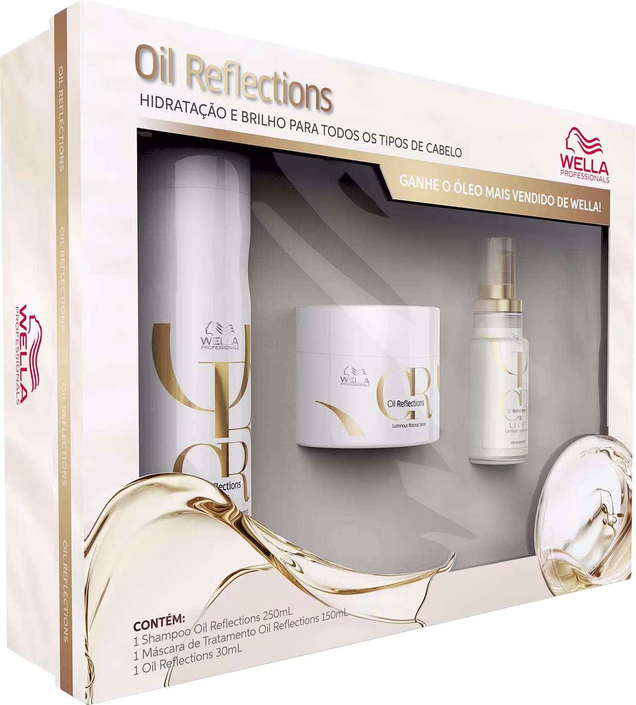 O Kit Wella Oil Reflections Power Trio traz um combo com shampoo, máscara e óleo capilar, que promovem um tratamento poderoso, devolvendo a vitalidade do cabelo e garantindo luminosidade instantânea e efeito antifrizz.