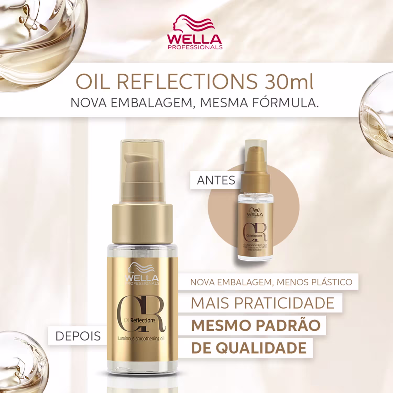 Kit de óleos para todos os tipos de cabelos, incluindo os mais finos. Wella Professionals Oil Reflections Super Shine ilumina os fios de maneira transformadora.