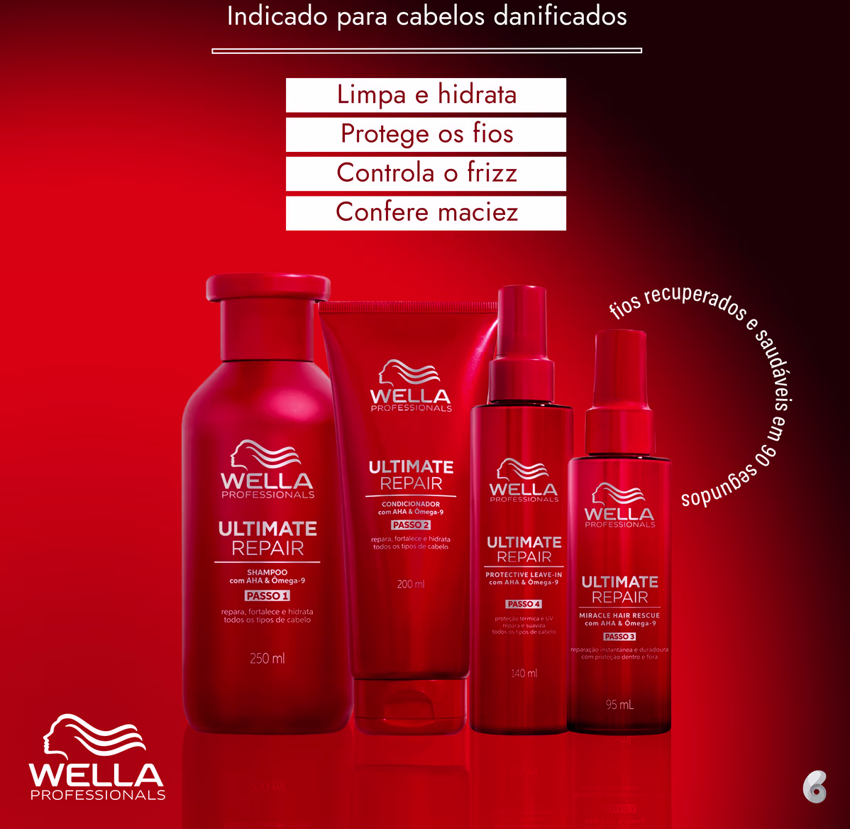 Com mais de 130 anos no mercado, e com origem alemã, Wella Professionals acompanha as tendências década após década e investe em estudos tecnológicos para estar sempre entre as maiores. A marca cuida do cabelo colorido, loiro, oleoso, sem vida, ressecado, envelhecido e com química ou alisamento. Com ativos poderosos, revitaliza a saúde capilar e recupera a beleza, o brilho, a maciez e o movimento dos fios. Há cem anos, a marca inova a cada dia para atender sempre e com mais atenção as suas clientes.