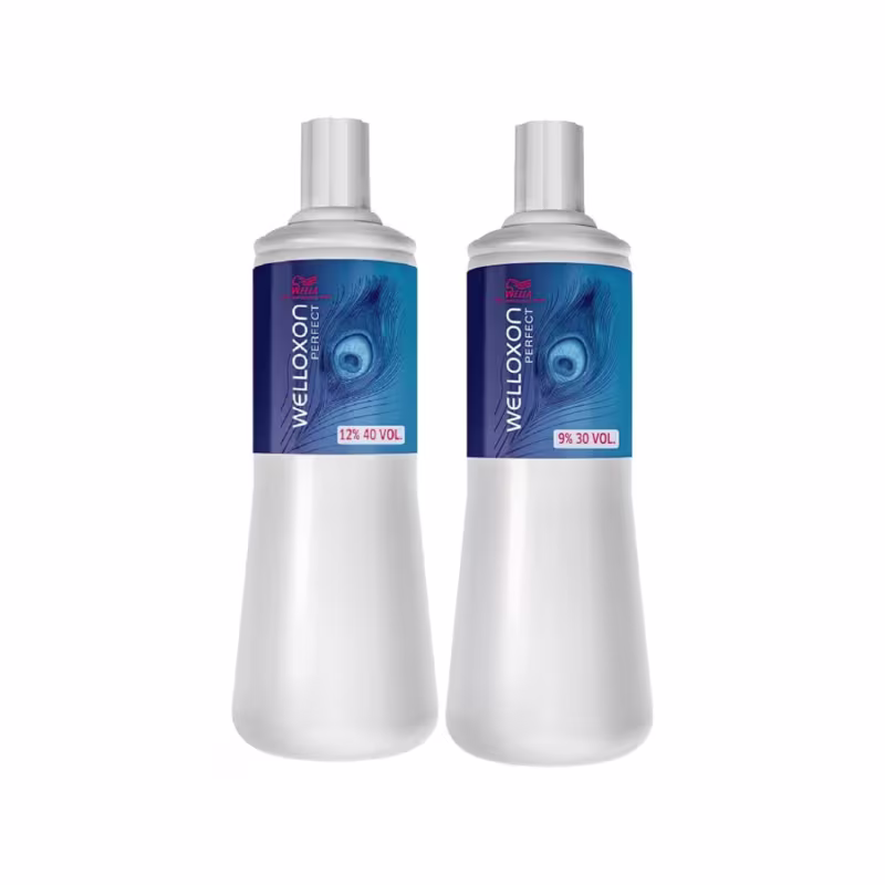 Kit com oxidantes de 30 e 40 volumes. Wella Professionals Welloxon Perfect 30/40 Vol Duo proporciona cobertura uniforme e resultados vibrantes.