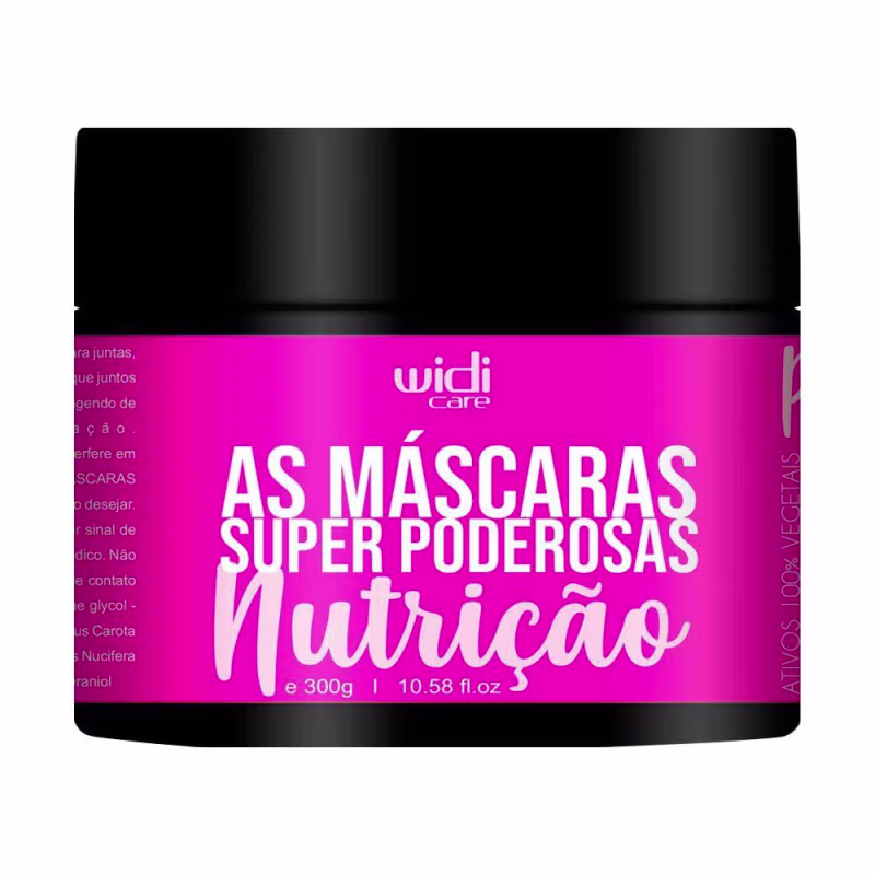 Widi Care As Máscaras Super Poderosas - Máscara de Nutrição 300g: tratamento, composto por Manteiga de Ucuuba, Óleo de cenoura e Óleo de girassol, que juntos agem fortalecendo a fibra, reparando, condicionando, nutrindo profundamente, tornando os fios mais resistentes a quebra, combatendo as pontas duplas, protegendo de agentes poluidores e agindo contra a oxidação.