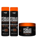 Kit com shampoo, condicionador e máscara capilar para cabelos danificados e ressecados. Widi Care Pérolas de Caviar hidrata e protege os fios.