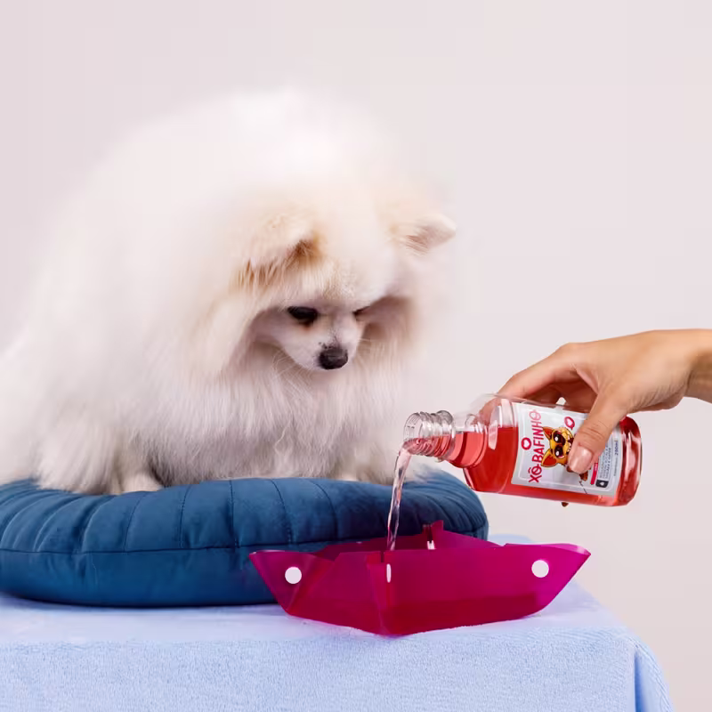 A Solução para Higiene Bucal de Cães e Gatos Xô Bafinho não tem sabor nem cheiro, mas por segurança você pode começar diluindo ainda mais e aumentar a dosagem até chegar na ideal, seu pet não sente diferença na água, mas você percebe a diferença no hálito do seu pet!