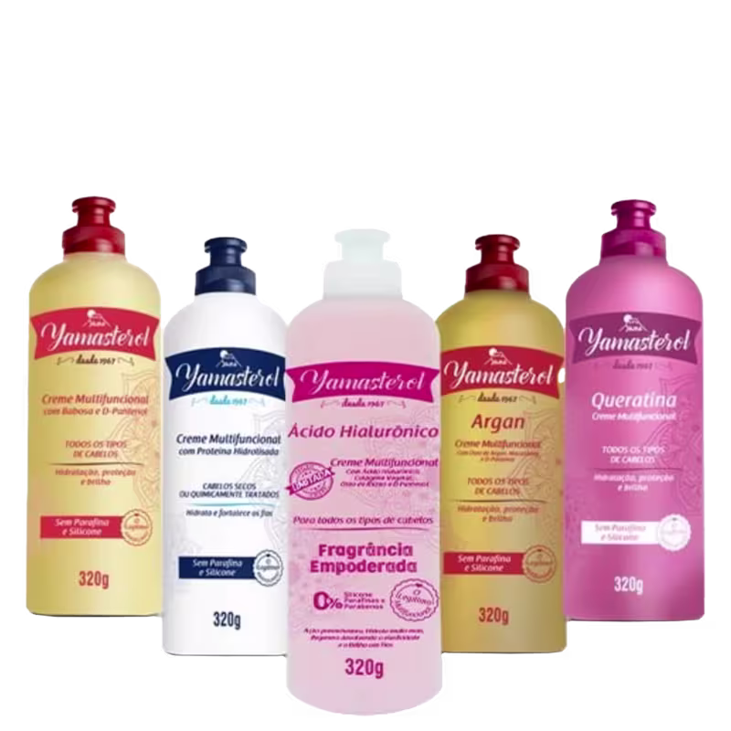 O Kit Yamá Yamasterol Linha Completa conta com todos os produtos da linha clássica, há mais de 5 décadas no mercado. Os itens garantem hidratação, nutrição e reconstrução dos fios, promovendo maciez, brilho e força. Por ser um produto extremamente versátil, pode ser usado com ou sem enxágue, como pré-shampoo, condicionador, creme para pentear, máscara de tratamento, e até como método Co-Wash. Garante resultados incríveis para todos os tipos de finalidades.