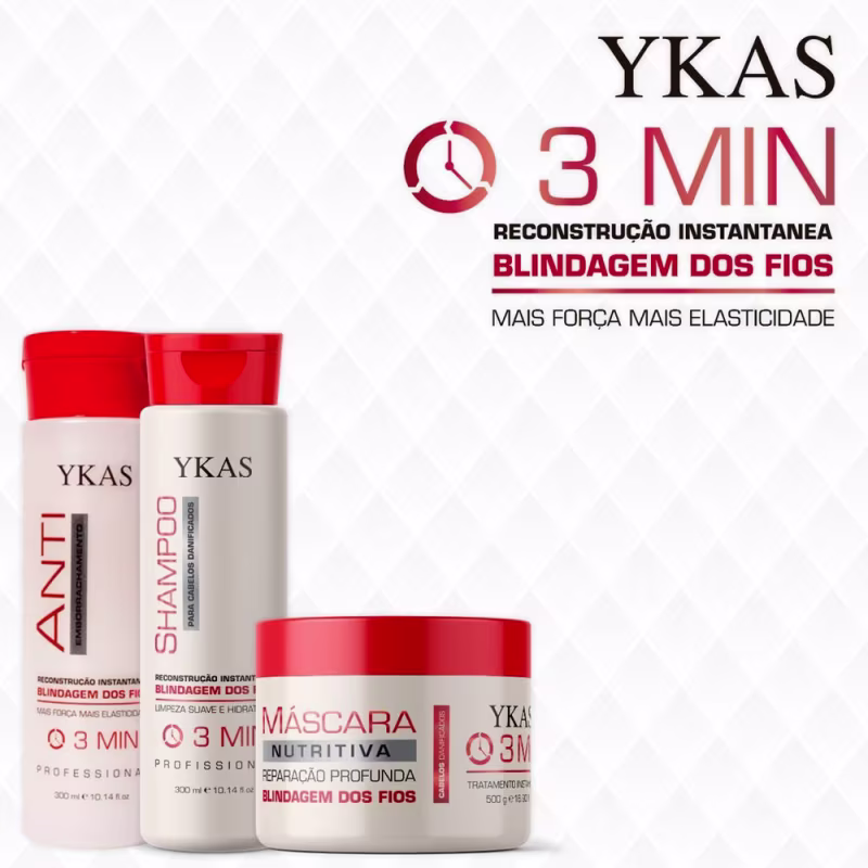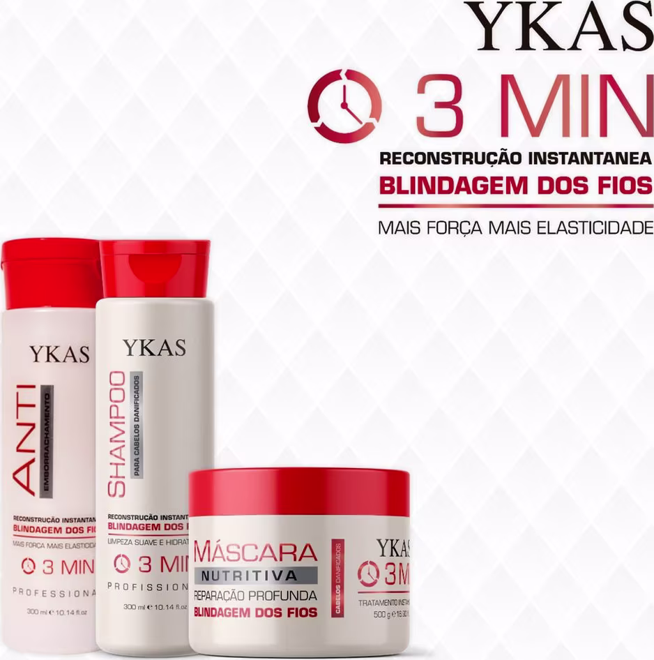 Kit YKAS 3 Minutos para tratar de uma vez os cabelos danificados, dando força e resistência. Melhores Kits de YKAS na BLZ. Ver mais ❯