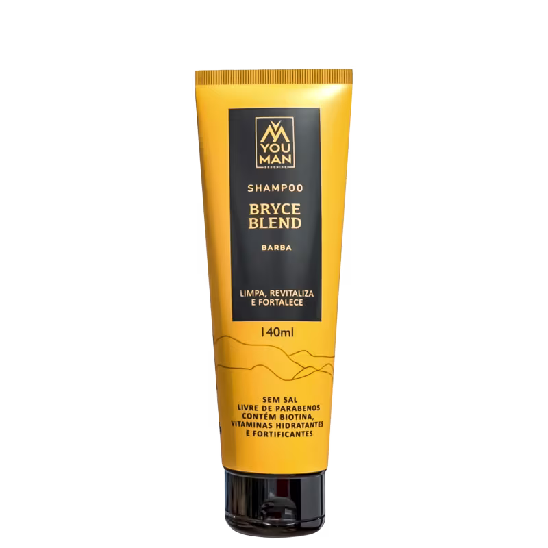 You Man Grooming Bryce Blend - Shampoo Fortificante para Barba 140ml: tem ação fortificante graças ao mix de Vitaminas poderosas, como Biotina, Pantenol, Zinco, Manganês e Silício. Também inclui uma formulação exclusiva com Extratos Revitalizantes, que também promovem uma ação hidratante nos fios.