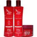 Kit com shampoo, condicionador e máscara pós-progressiva. Zap Nourish Home Care Trio garante fios saudáveis, nutridos e mais belos.
