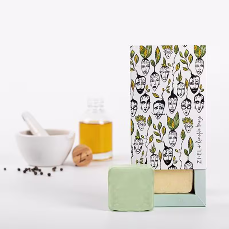 Ziel Natural Cosmetics & Ronaldo Fraga Capim-Limão com Pimenta Preta - Sabonete em Barra 74g: limpa suavemente a pele e perfuma com uma fragrância que energiza os sentidos.