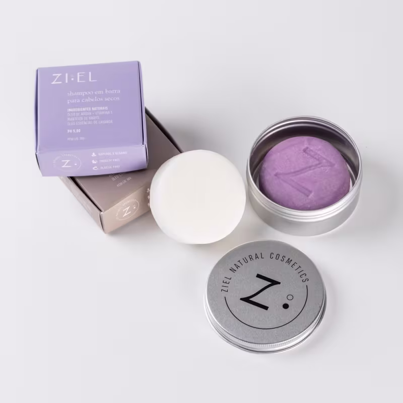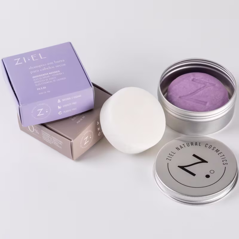 Ziel Natural Cosmetics Cabelos Secos - Shampoo em Barra 70g: limpa e trata a fibra capilar, deixando os fios mais saudáveis, macios, brilhosos, reduzindo a queda e a quebra.