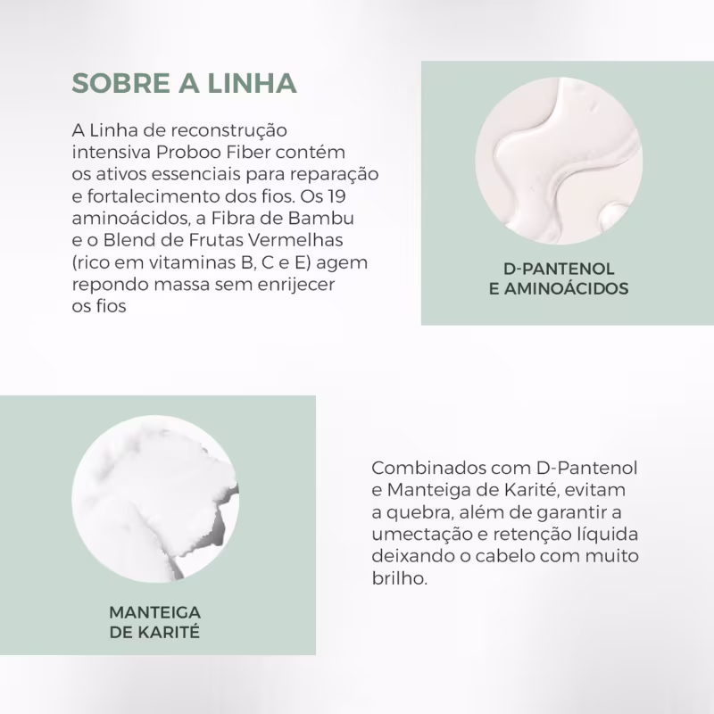 Depoimentos:“Após usar o Kit Home Care Proboo Fiber, meus cabelos estão visivelmente mais fortes e com um brilho incrível. Nunca me senti tão confiante com meus fios!”