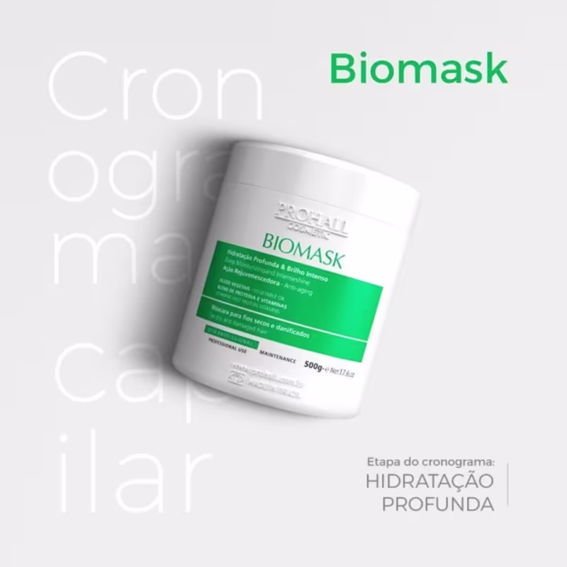 IndicaçõesOs produtos da linha Biomask são indicados para todos os tipos de cabelo: lisos, ondulados, cacheados e crespos. O Shampoo e o Condicionador são adequados para uso diário, enquanto a Máscara pode ser utilizada até 6 vezes por semana, especialmente em cabelos secos, danificados ou quimicamente tratados.