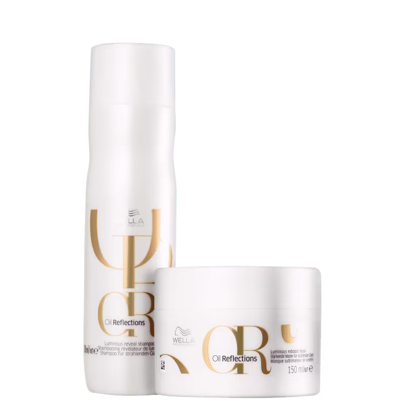 Kit de shampoo e máscara para todos os tipos de cabelo. Wella Professionals Oil Reflections proporciona luminosidade incrível e maciez intensa.