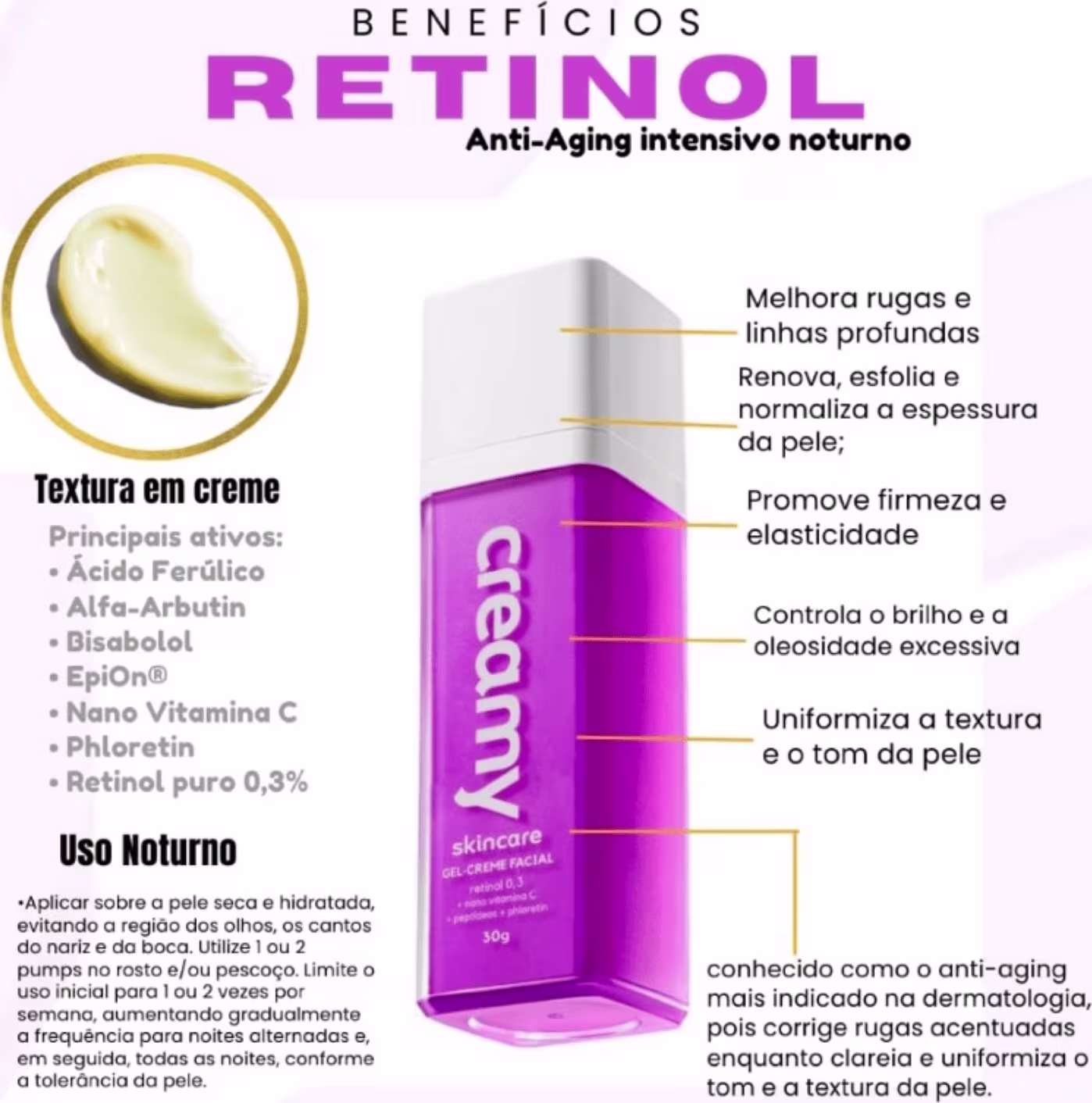 Kit Creamy Retinol - Gel-Creme Redutor de Linhas 30g - 2 Unidades