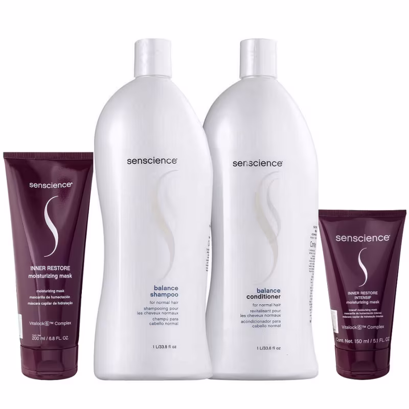 Kit Senscience Balance Shampoo 1L e Condicionador 1L + Inner Intensif 150ml e Inner Moisturizing 200ml