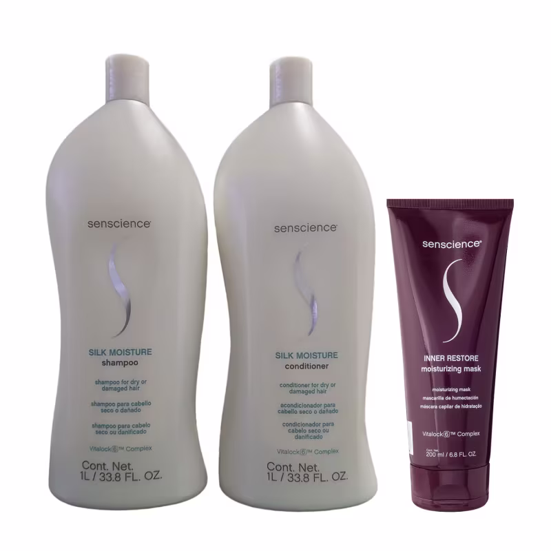 Para quem busca um tratamento completo e duradouro para cabelos secos, danificados ou quimicamente tratados, o Kit Senscience Silk Moisture é a solução ideal. Este conjunto profissional oferece uma limpeza delicada, condicionamento intenso e uma máscara poderosa para restaurar a vitalidade, a maciez e o brilho dos seus fios.