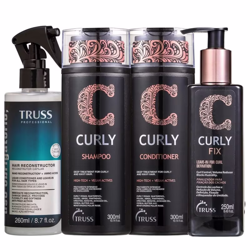 Kit Truss Curly - Shampoo 300ml + Condicionador 300ml + Leave-in Fix 250ml + Uso Obrigatório 260ml