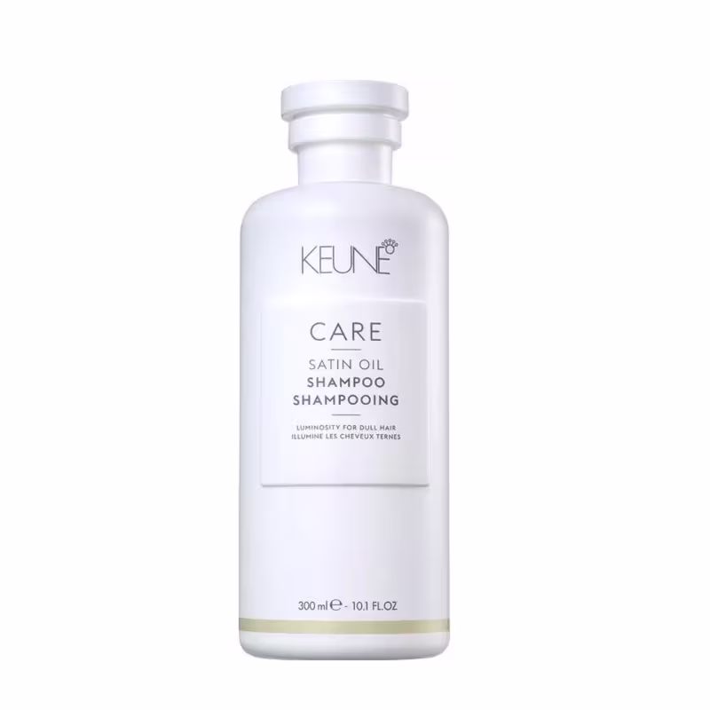 Shampoo: Com os cabelos molhados, aplique uma pequena quantidade do Keune Care Satin Oil Shampoo. Massageie suavemente o couro cabeludo e os fios até formar espuma. Enxágue abundantemente. Se necessário, repita a aplicação.