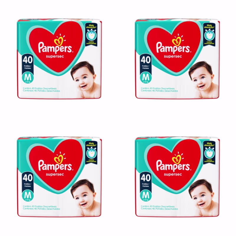 Kit 4 Fraldas Pampers Supersec M c/40 Unidades cada
