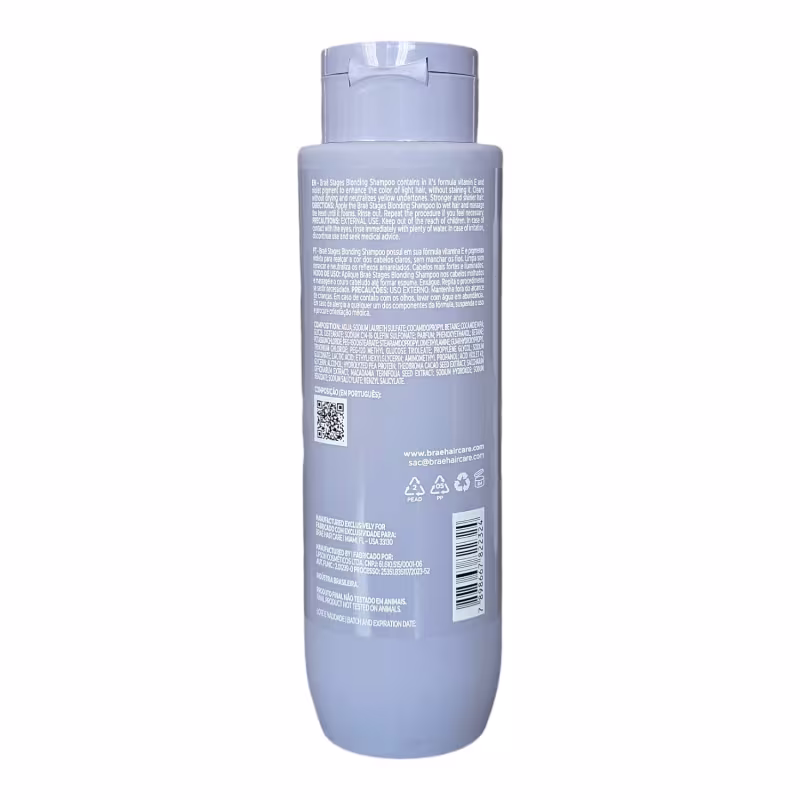 Braé Stages Blonding - Shampoo 250ml: para cabelos loiros ou descoloridos. Limpa e trata os fios de forma eficaz, realçando a cor dos cabelos claros. Seu efeito matizador proporciona loiros mais saudáveis, vibrantes e iluminados por mais tempo.