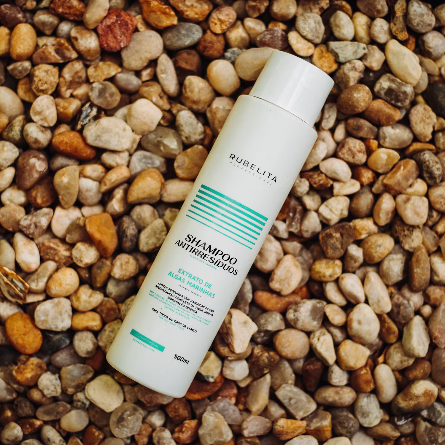 Rubelita Professional – Shampoo Antirresíduo Algas Marinhas 500ml: limpeza eficaz que remove acúmulo de produtos e impurezas, preparando a fibra para tratamentos profissionais.