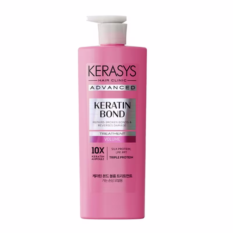 Kerasys Keratin Bond Kit ( Sh Silky Moisture + Trat Volume) 600mlA dupla Silky Moisture Shampoo e Volume Treatment é perfeita para quem busca cabelos com toque sedoso, brilho radiante e volume natural. Enquanto o shampoo hidrata profundamente e combate o ressecamento, o tratamento condicionante devolve corpo e leveza aos fios, sem pesar.