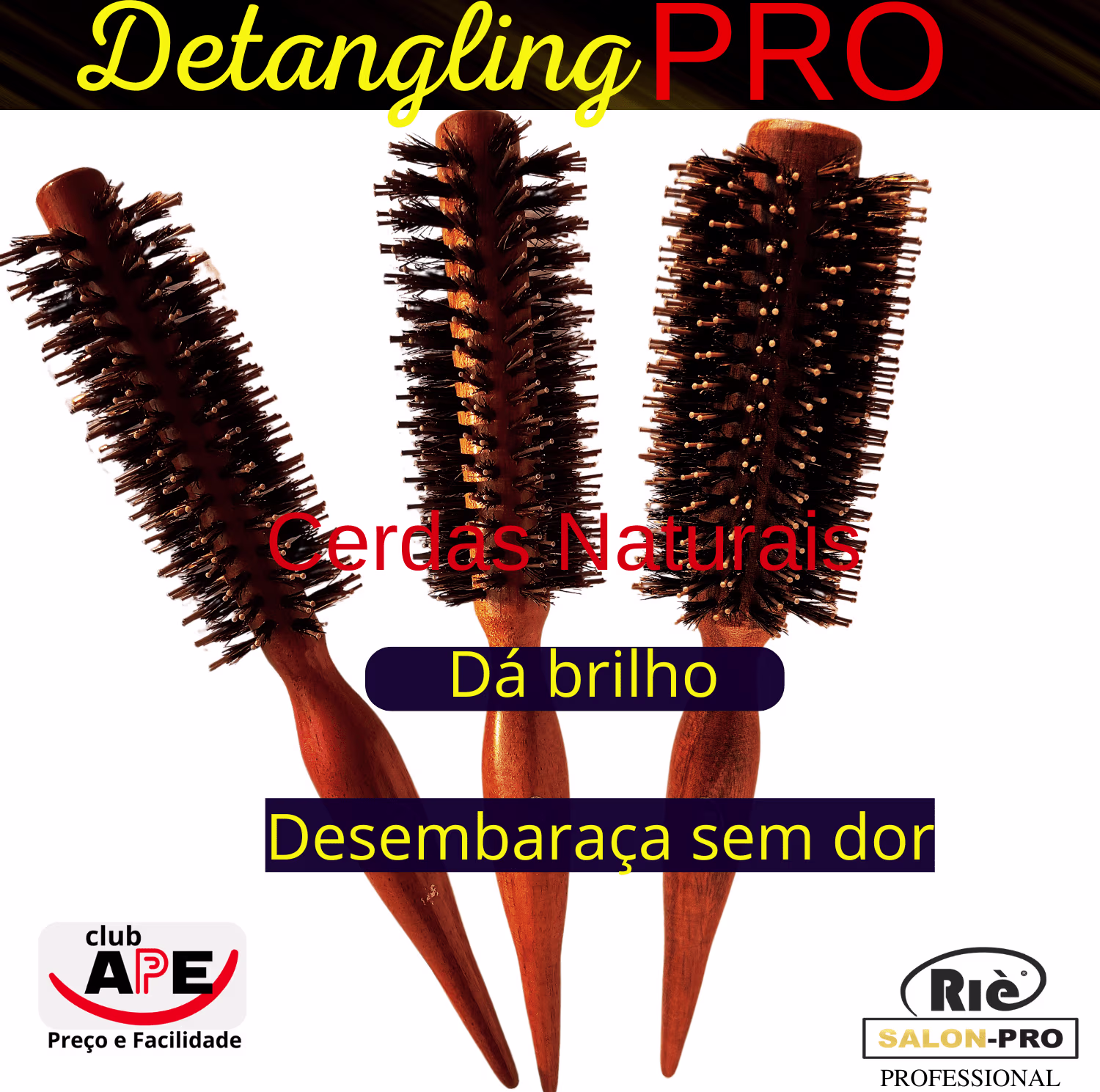 Escova de cabelo RIÈ salon-pro Detangling ajuda a desembaraçar facilmente os indesejados nós enquanto dá brilho aos fios.