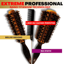 COMPOSTO POR: Escova Extreme Professional Nano Titanium Technology 47 mm MARCA: RIÈ salon-pro DIÂMETRO: 47 MM CERDAS: 100% Javali CABO: Ergonômico - revestido por borracha efeito de Madeira - Inteiro BASE: Cerâmica - Nano Titanium Escova de cabelo RIÈ salon-pro Extreme Professional Nano Titanium Technology garante secagem mais rápida, controle do frizz, brilho máximo e conforto no uso. A Escova RIÈ salon-pro Extreme Professional Nano Titanium Technology combina tecnologia avançada, desempenho poderoso com resultados incríveis. Utilizando tecnologia Nano Titanium, os cabelos secam muito mais rapidamente e você alisa ou modela facilmente com resultados muito mais duradouros. Além disso, a base suporta temperaturas mais altas sem danificar o cabelo, e o design ergonômico e a leveza proporcionam mais conforto durante o seu uso. CARACTERÍSTICAS: > Nano Titanium Techonology proteção para os fios; > Brilho máximo seus cabelos ganham brilho sem igual; > Frizz Control redução máxima do Frizz e alinhamento dos fios; > Secagem ultra rápida rapidez máxima na sua escovação; > Cerdas 100% Naturais Javali + Pinos Tracionadores de Nylon; > Cabo Ergonômico; > Tipos de cabelo Alisa e modela cabelos crespos, encaracolados, ondulados ou difíceis de escovar.